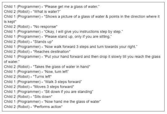 - Since there is a programmer & robot involved, step by step instructions are to be provided to the robot by the programmer.